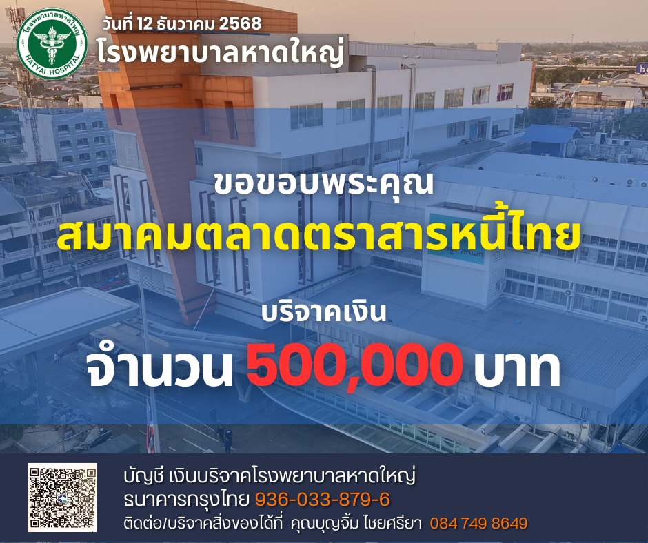 ThaiBMA Gallery ThaiBMA สนับสนุนเงินช่วยเหลือผู้ประสบอุทกภัยในพื้นที่หาดใหญที่ประสบอุทกภัย โดยขอร่วมบริจาคเงินช่วยฟื้นฟูโรงพยาบาลหาดใหญ่ ThaiBMA ขอร่วมส่งกำลังใจและความห่วงใยไปยังพี่น้องประชาชนในพื้นที่หาดใหญที่ประสบอุทกภัย โดยขอร่วมบริจาคเงินช่วยฟื้นฟูโรงพยาบาลหาดใหญ่ ขอให้ทุกท่านปลอดภัย ผ่านวิกฤตครั้งนี้โดยเร็ว 🙏 Back to Main Gallery