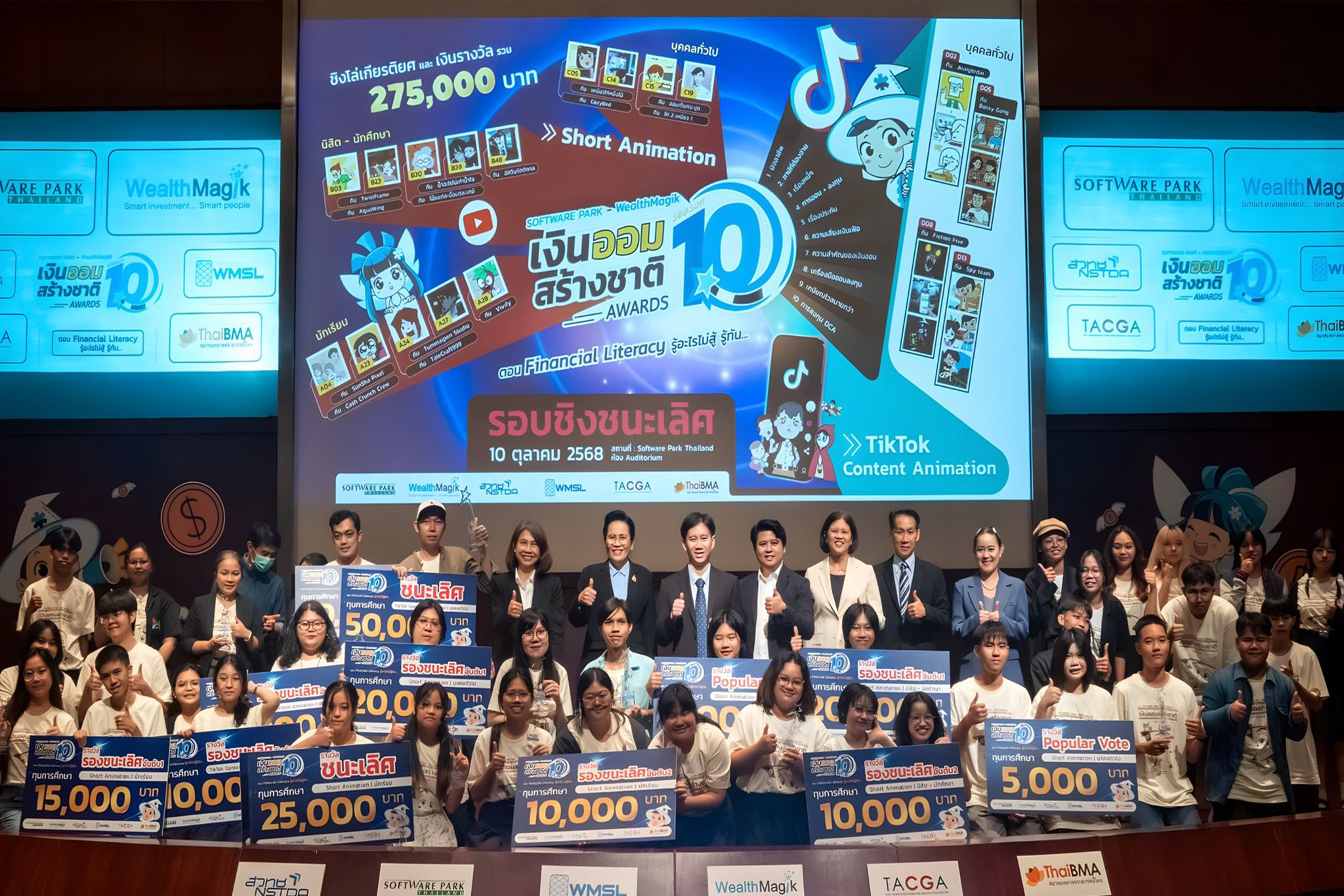 ThaiBMA Gallery ThaiBMA ร่วมเป็นส่วนหนึ่งของโครงการ Software Park - WealthMagik เงินออมสร้างชาติ Awards Season 10 สมาคมตลาดตราสารหนี้ไทย (ThaiBMA) ร่วมเป็นส่วนหนึ่งของโครงการ Software Park - WealthMagik เงินออมสร้างชาติ Awards Season 10 ที่เป็นการประกวดสื่อการ์ตูนแอนิเมชันภายใต้ Theme “Financial Literacy รู้อะไรไม่สู้รู้ทัน..” โดยคุณชัยธัช ประจวบดี ผู้ช่วยกรรมการผู้จัดการ สมาคมตลาดตราสารหนี้ไทย เข้าร่วมงานและมอบรางวัลแก่ผู้ชนะการประกวด ณ ห้อง Auditorium ชั้น 3 อาคาร Software Park ถนนแจ้งวัฒนะ เมื่อวันศุกร์ที่ 10 ตุลาคม 2568 ที่ผ่านมา Back to Main Gallery