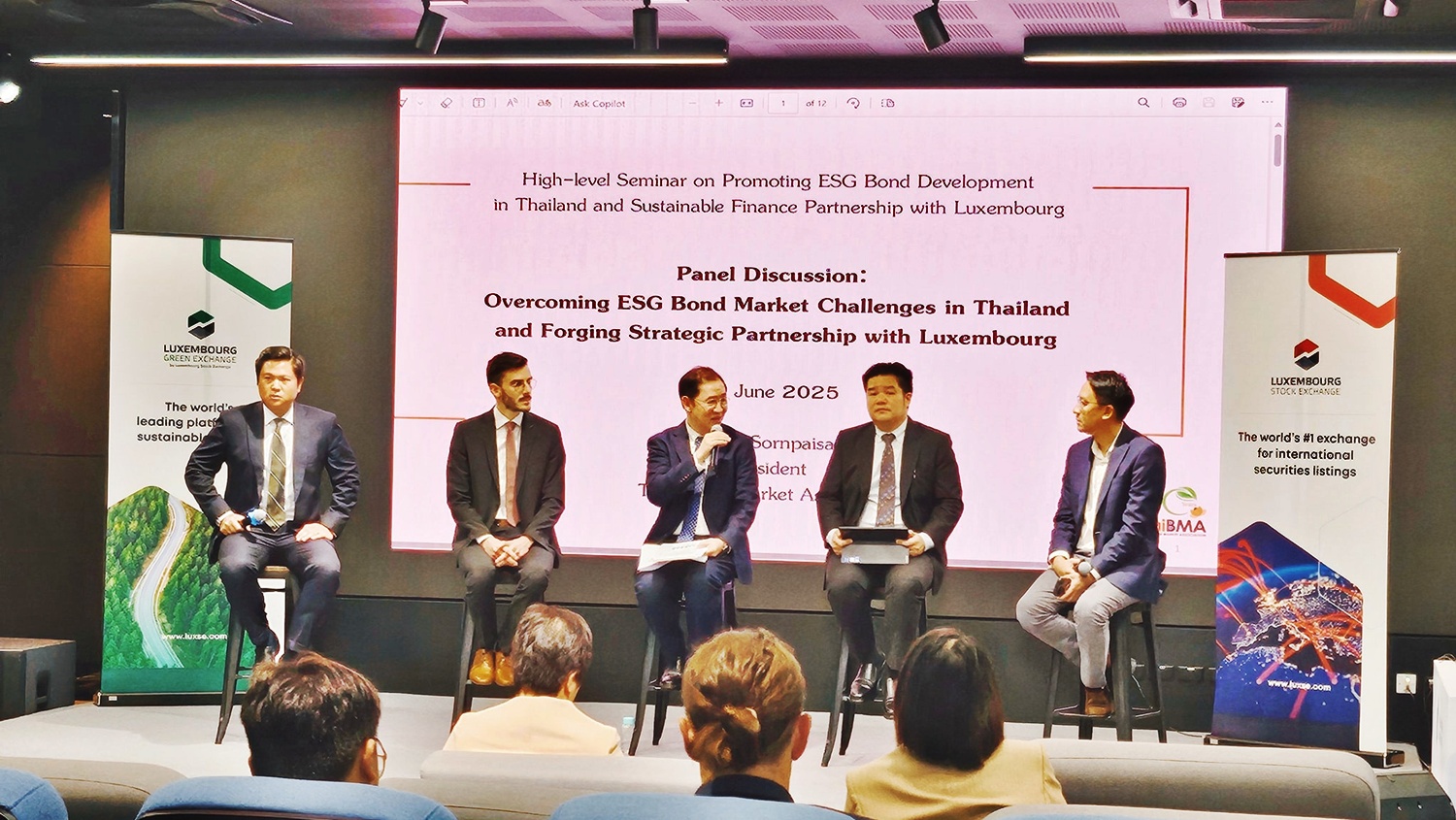 ThaiBMA Gallery คณะพาณิชยศาสตร์และการบัญชี จุฬาลงกรณ์มหาวิทยาลัย ร่วมกับสถานเอกอัครราชทูตไทย ณ กรุงบรัสเซลส์ และตลาดหลักทรัพย์ลักเซมเบิร์ก 17 มิถุนายน 2568 คณะพาณิชยศาสตร์และการบัญชี จุฬาลงกรณ์มหาวิทยาลัย ร่วมกับสถานเอกอัครราชทูตไทย ณ กรุงบรัสเซลส์ และตลาดหลักทรัพย์ลักเซมเบิร์ก ได้จัดสัมมนา "Promoting ESG Bond Development in Thailand and Sustainable Finance Partnership with Luxembourg" ณ Chulalongkorn Business School โดยมีผู้เชี่ยวชาญทั้งจากไทยและต่างประเทศร่วมบรรยายในประเด็นสำคัญเกี่ยวกับตลาดตราสารหนี้ ESG ดร.สมจินต์ ศรไพศาล กรรมการผู้จัดการ สมาคมตลาดตราสารหนี้ไทย ร่วมเสวนาในหัวข้อ “Overcoming ESG Bond Market Challenges in Thailand and Forging Strategic Partnership with Luxembourg” ร่วมกับผู้แทนจากสำนักงาน ก.ล.ต., ตลาดหลักทรัพย์ลักเซมเบิร์ก และสำนักงานบริหารหนี้สาธารณะ เนื้อหาเน้นถึงโอกาสและความท้าทายของตลาดตราสารหนี้ ESG ไทย บทบาทของภาครัฐและเอกชน รวมถึงความร่วมมือกับลักเซมเบิร์กในฐานะศูนย์กลางการเงินยั่งยืนของยุโรป ขอขอบคุณทุกท่านที่ให้ความสนใจและเข้าร่วมงานในครั้งนี้ #ESGBond #SustainableFinance #ThaiBMA #ChulaBusinessSchool #LuxembourgExchange Back to Main Gallery