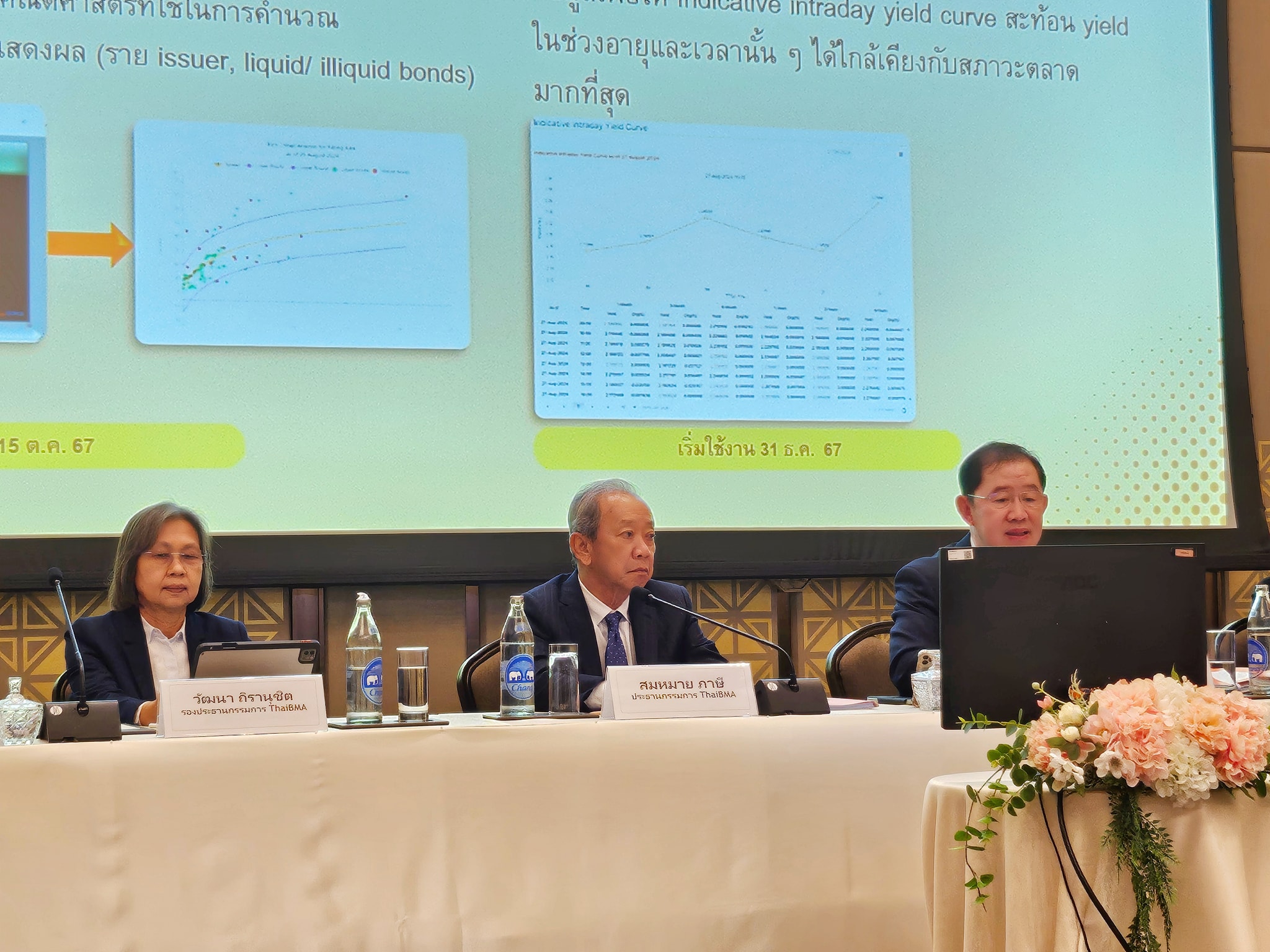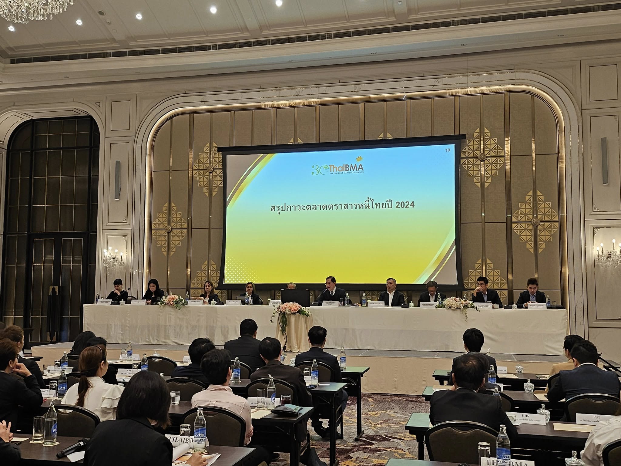 ThaiBMA Gallery ThaiBMA จัดประชุมใหญ่สามัญประจำปี 2568 สมาคมตลาดตราสารหนี้ไทย (ThaiBMA) จัดประชุมใหญ่สามัญประจำปี 2568 ในวันพฤหัสบดีที่ 24 เมษายน 2568 เวลา 11.00-12.00 น. ณ โรงแรมอีสติน แกรนด์พญาไท นำโดย คุณสมหมาย ภาษี ประธานกรรมการสมาคม เป็นประธานในที่ประชุม Back to Main Gallery