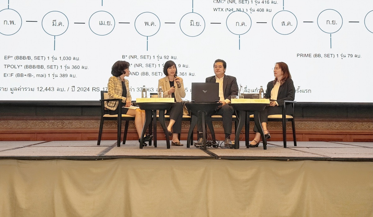 ThaiBMA Gallery ThaiBMA ร่วมงานสัมมนาเพื่อเสริมสร้างความรู้เกี่ยวกับหลักเกณฑ์การออกและเสนอขายตราสารหนี้ที่ปรับปรุงใหม่ในปี 2568 25 พฤศจิกายน 2568 ชมรมวาณิชธนกิจ สมาคมบริษัทหลักทรัพย์ไทย จัดงานสัมมนาเพื่อเสริมสร้างความรู้เกี่ยวกับหลักเกณฑ์การออกและเสนอขายตราสารหนี้ที่ปรับปรุงใหม่ในปี 2568 พร้อมแลกเปลี่ยนมุมมองตลาดตราสารหนี้ไทย–ต่างประเทศ การจัดอันดับเครดิต และประเด็นสำคัญในการยื่นขออนุญาตเสนอขายตราสารหนี้ สมาคมตลาดตราสารหนี้ไทย (ThaiBMA) โดย คุณอริยา ติรณะประกิจ รองกรรมการผู้จัดการ ร่วมเสวนาในหัวข้อ “ปัญหาและความท้าทายของการออกและเสนอขายหุ้นกู้...ในภาวะดอกเบี้ยขาลง” ณ ห้องแกรนด์ บอลรูม 2–3 โรงแรมแกรนด์ ไฮแอท เอราวัณ กรุงเทพฯ Back to Main Gallery