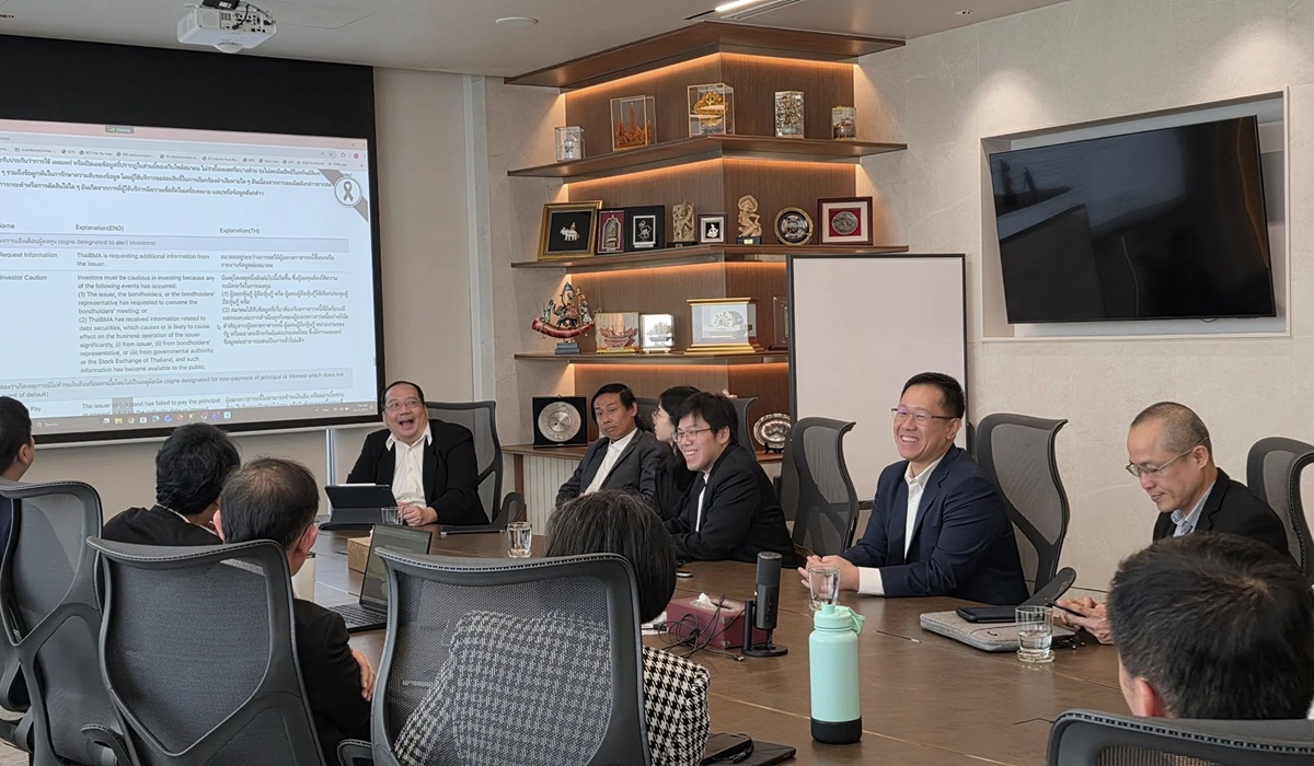 ThaiBMA Gallery ThaiBMA ให้การต้อนรับ คณาจารย์จากคณะเศรษฐศาสตร์ และคณะพาณิชยศาสตร์และการบัญชี มหาวิทยาลัยธรรมศาสตร์ 26 พฤศจิกายน 2568 สมาคมตลาดตราสารหนี้ไทย(ThaiBMA) โดย ดร.สมจินต์ ศรไพศาล กรรมการผู้จัดการและฝ่ายงานที่เกี่ยวข้อง ให้การต้อนรับ คณาจารย์จากคณะเศรษฐศาสตร์ และคณะพาณิชยศาสตร์และการบัญชี มหาวิทยาลัยธรรมศาสตร์ ในการเข้าพบครั้งนี้ ได้หารือและอัปเดตความคืบหน้าการดำเนินโครงการวิจัยเรื่อง "พลวัตของเส้นอัตราผลตอบแทนพันธบัตรรัฐบาลและการประเมินความเสี่ยงของหุ้นกู้ภาคเอกชน" ซึ่งเป็นอีกหนึ่งความร่วมมือด้านวิชาการ เพื่อส่งเสริมการพัฒนาตลาดทุนไทยภายใต้การสนับสนุนจากกองทุนส่งเสริมการพัฒนาตลาดทุน (CMDF) #ThaiBMA #สมาคมตลาดตราสารหนี้ไทย #CMDF Back to Main Gallery