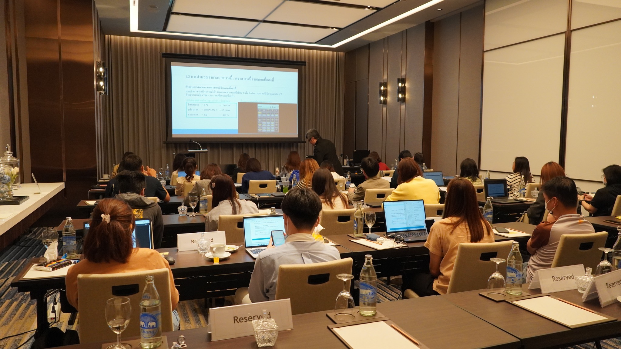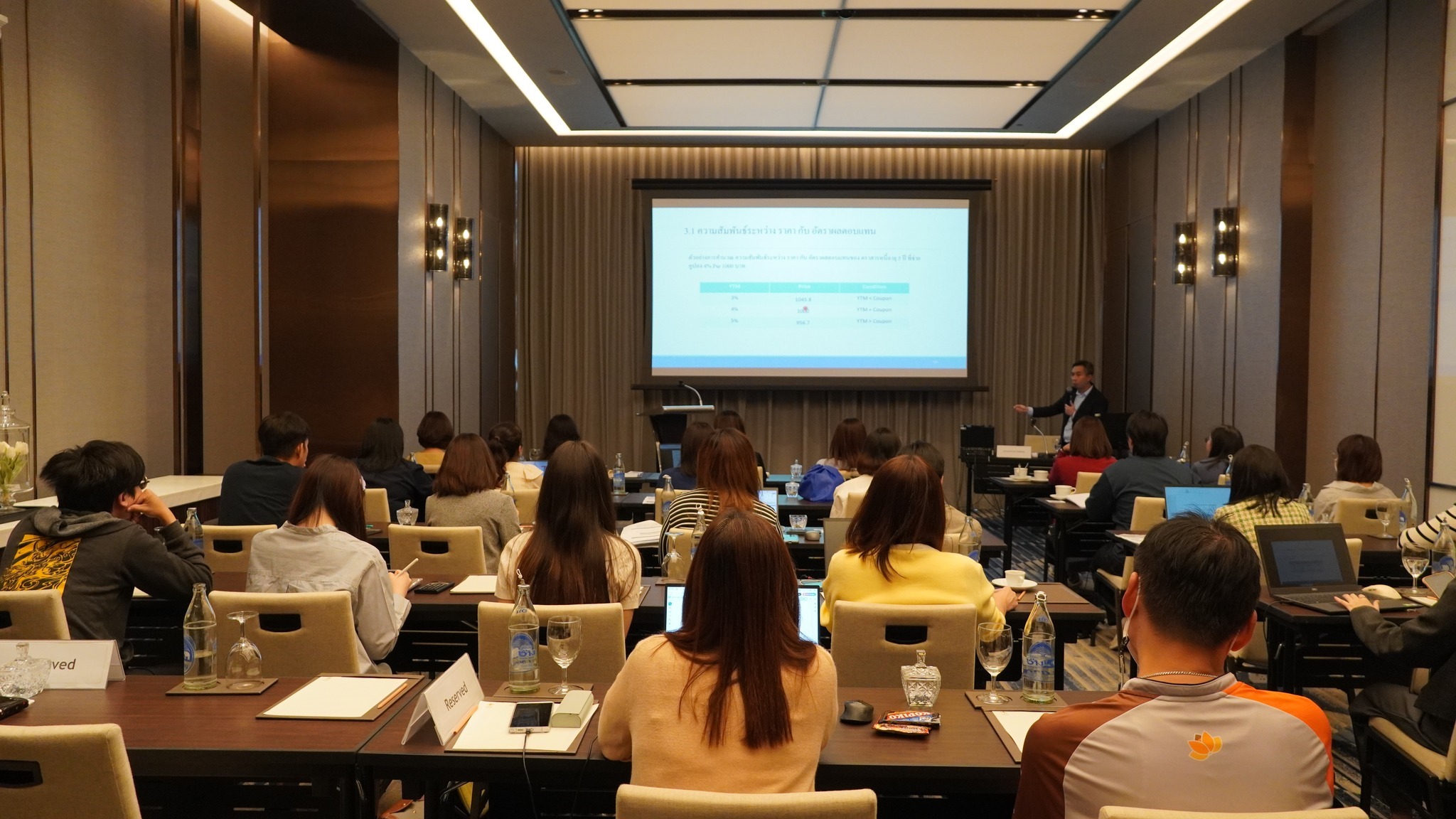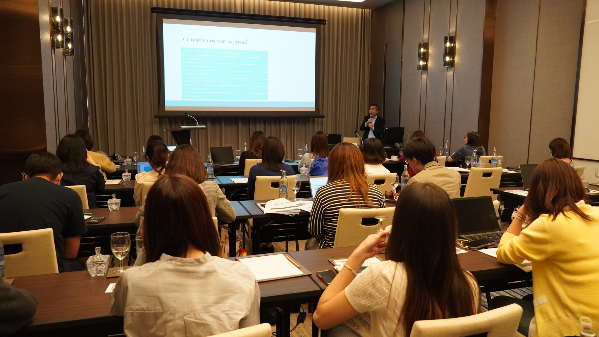 ThaiBMA Gallery ThaiBMA จัดอบรมหลักสูตร Bond Mathematics : Essential Concepts & Tools ภาพบรรยากาศการอบรม หลักสูตร Bond Mathematics : Essential Concepts & Tools จัดขึ้นในวันที่ 27 มิถุนายน 2568 เวลา 09.00 – 16.30 น. ณ โรงแรมอีสติน แกรนด์ พญาไท สมาคมตลาดตราสารหนี้ไทย (ThaiBMA) ขอขอบคุณวิทยากร และผู้เข้าอบรมทุกท่าน ที่ให้เกียรติเข้าร่วมอบรมในครั้งนี้ Back to Main Gallery