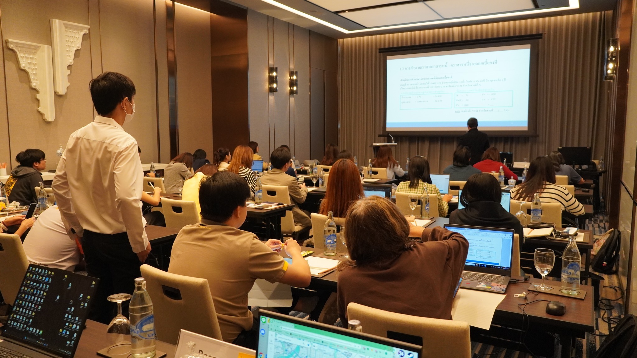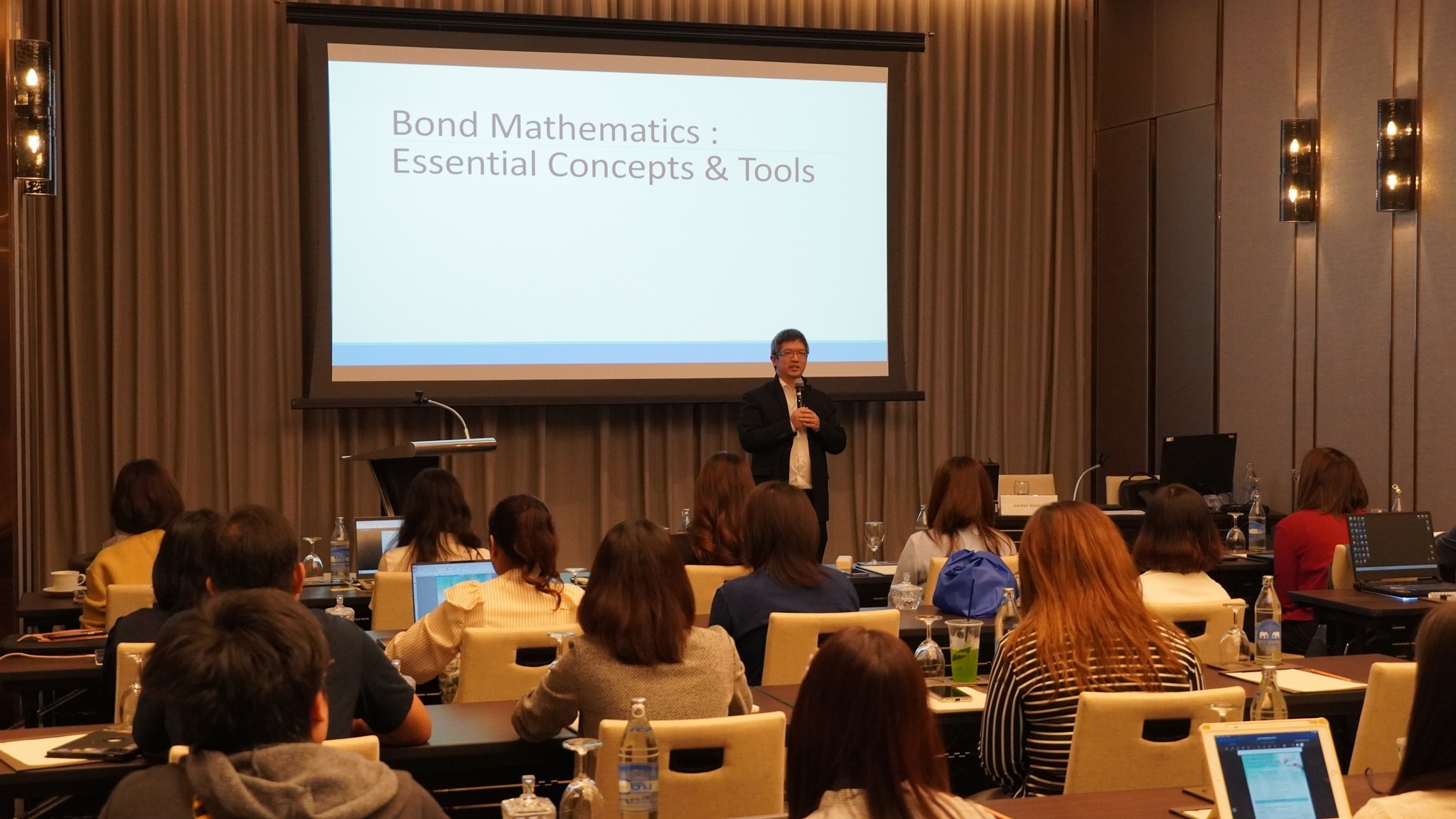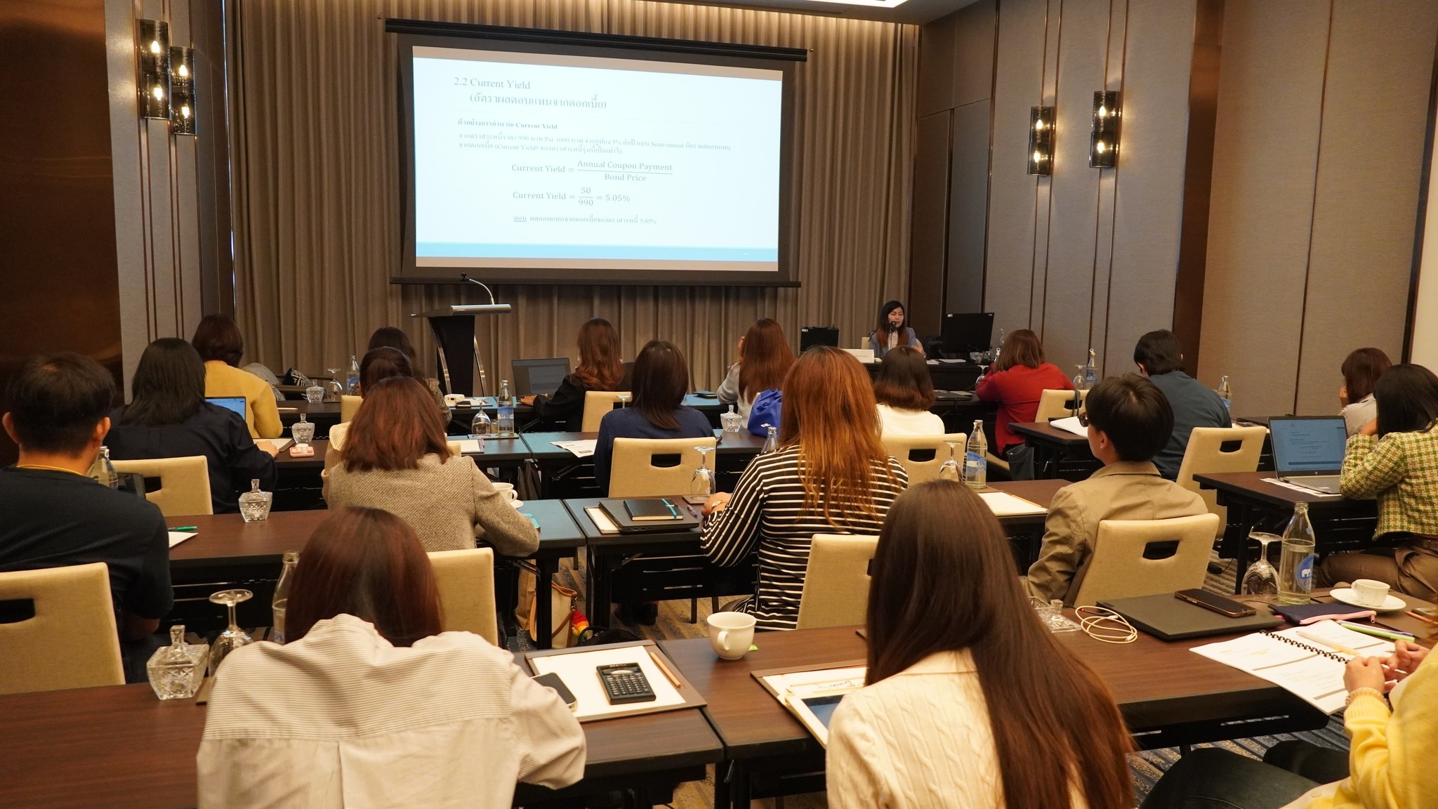 ThaiBMA Gallery ThaiBMA จัดอบรมหลักสูตร Bond Mathematics : Essential Concepts & Tools ภาพบรรยากาศการอบรม หลักสูตร Bond Mathematics : Essential Concepts & Tools จัดขึ้นในวันที่ 27 มิถุนายน 2568 เวลา 09.00 – 16.30 น. ณ โรงแรมอีสติน แกรนด์ พญาไท สมาคมตลาดตราสารหนี้ไทย (ThaiBMA) ขอขอบคุณวิทยากร และผู้เข้าอบรมทุกท่าน ที่ให้เกียรติเข้าร่วมอบรมในครั้งนี้ Back to Main Gallery