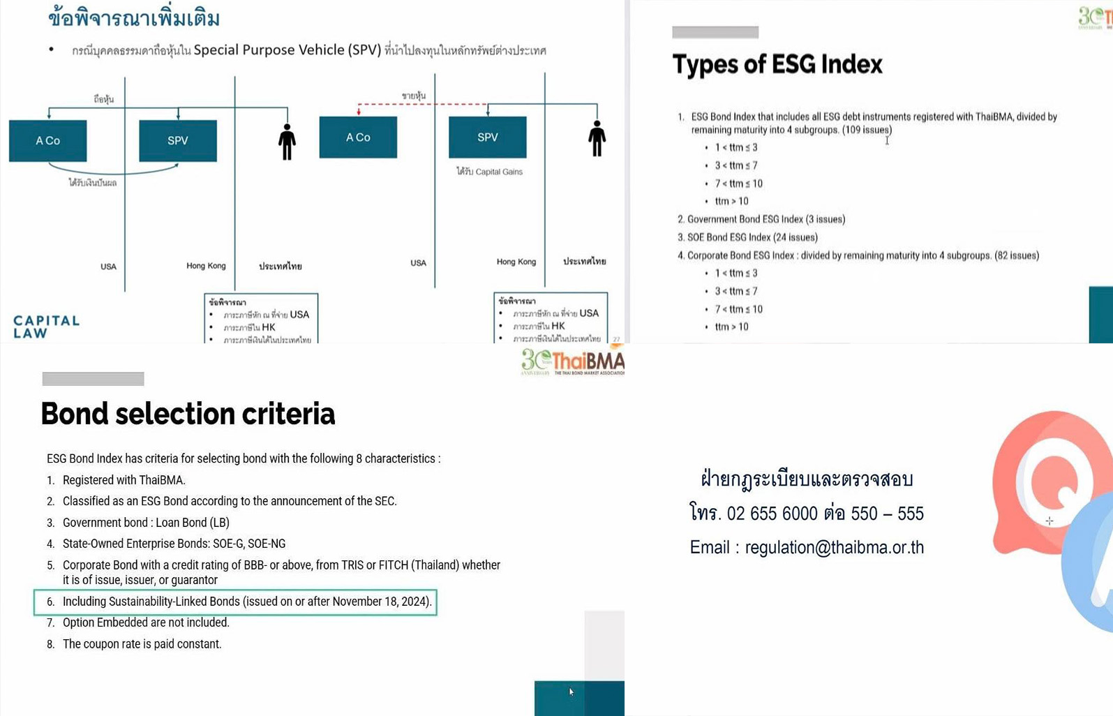 ThaiBMA Gallery ThaiBMA จัดอบรมหลักสูตร Bond Trader Refresher Course 2025 No.1 (รอบชดเชย) สมาคมตลาดตราสารหนี้ไทย (ThaiBMA) จัดอบรมหลักสูตร Bond Trader Refresher Course 2025 No.1 (รอบชดเชย) วันเสาร์ที่ 28 มิถุนายน 2568 ในรูปแบบ Online ผ่านระบบ MS Teams โดยทางสมาคมได้รับเกียรติจาก คุณธนะศักดิ์ จรรยาพูน Senior partner และคุณบารมี อินทรลิบ Tax Associate บริษัท สำนักงานกฎหมายแคปปิตอล จำกัด เป็นวิทยากร ในการบรรยายหัวข้อแนวทางการจัดเก็บภาษีจากการลงทุนในหลักทรัพย์ต่างประเทศ และทำความรู้จัก Global minimum tax ThaiBMA ขอขอบคุณวิทยากร และผู้เข้ารับการอบรมทุกท่าน Back to Main Gallery
