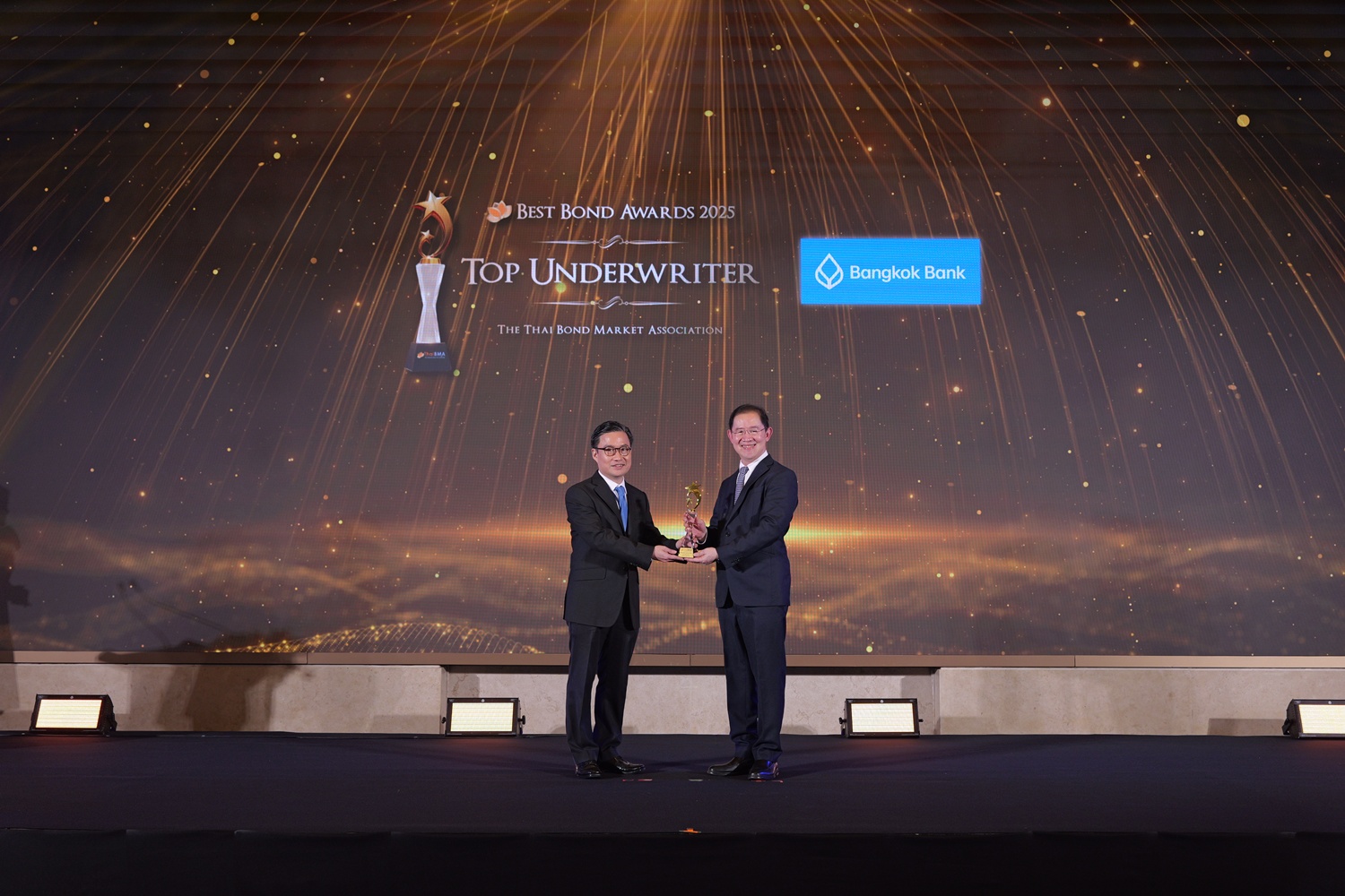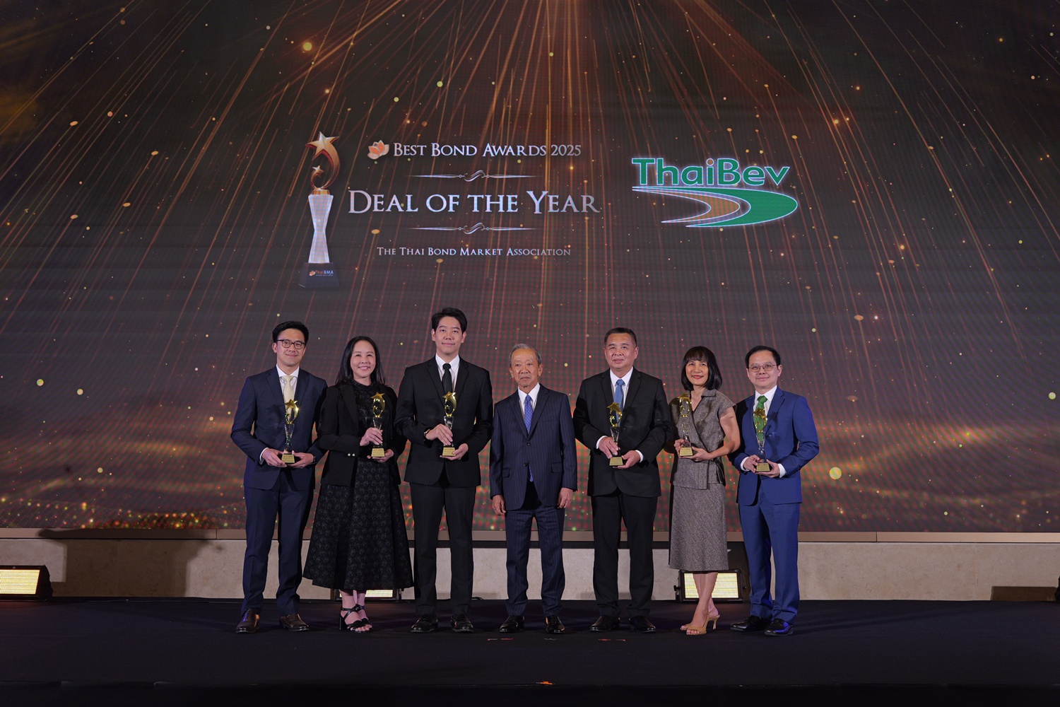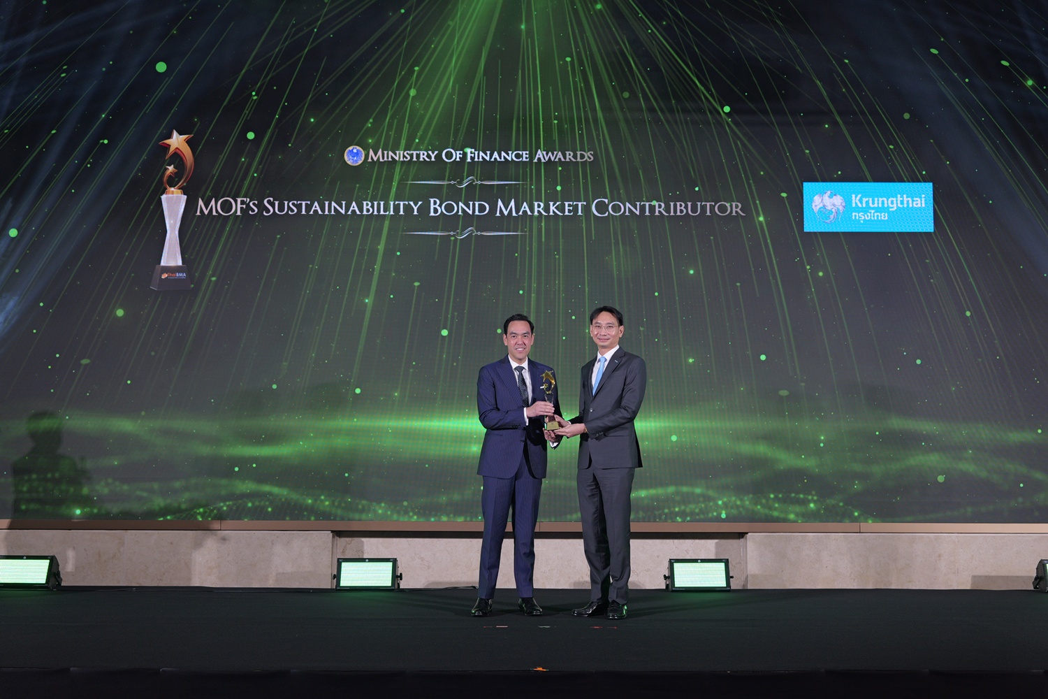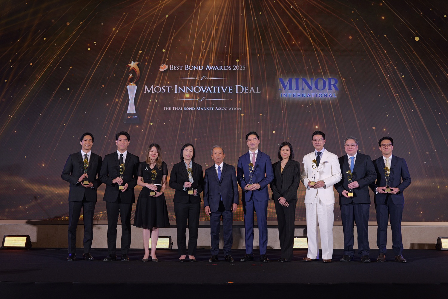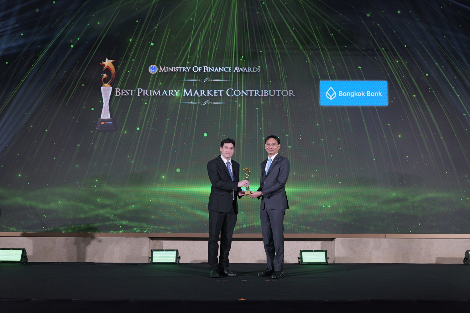 ThaiBMA Gallery สมาคมตลาดตราสารหนี้ไทยจัดงานมอบรางวัลตราสารหนี้ยอดเยี่ยมแห่งปี 2568 (ThaiBMA Best Bond Awards 2025) สมาคมตลาดตราสารหนี้ไทยจัดงานมอบรางวัลตราสารหนี้ยอดเยี่ยมแห่งปี 2568 (ThaiBMA Best Bond Awards 2025) เมื่อวันที่ 27 กุมภาพันธ์ 2569 ณ ห้องฉัตราบอลลูม โรงแรมสยามเคมปินสกี้ กรุงเทพฯ โดยมีวัตถุประสงค์เพื่อยกย่ององค์กร และบุคลากรที่มีความโดดเด่นในธุรกรรมตราสารหนี้ และส่งเสริมให้องค์กรต่างๆ ที่เกี่ยวข้องร่วมกันพัฒนาตลาดตราสารหนี้ให้เติบโตอย่างยั่งยืน การตัดสินรางวัล Best Bond Awards มาจากผลการลงคะแนนของคณะกรรมการตัดสิน สถิติ และการลงคะแนนจากผู้มีส่วนร่วมในตลาดตราสารหนี้ ⭐️ท่านสามารถ Download เอกสาร Press Release ได้ที่นี่: https://www.thaibma.or.th/doc/press/y2026/Press27022026.pdf Back to Main Gallery