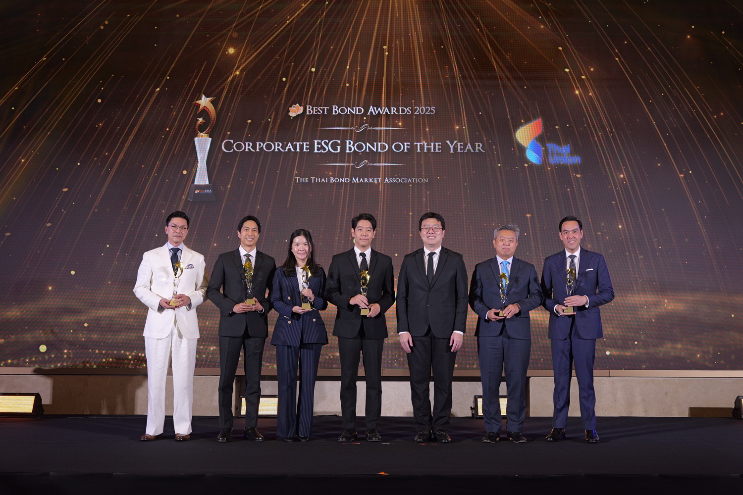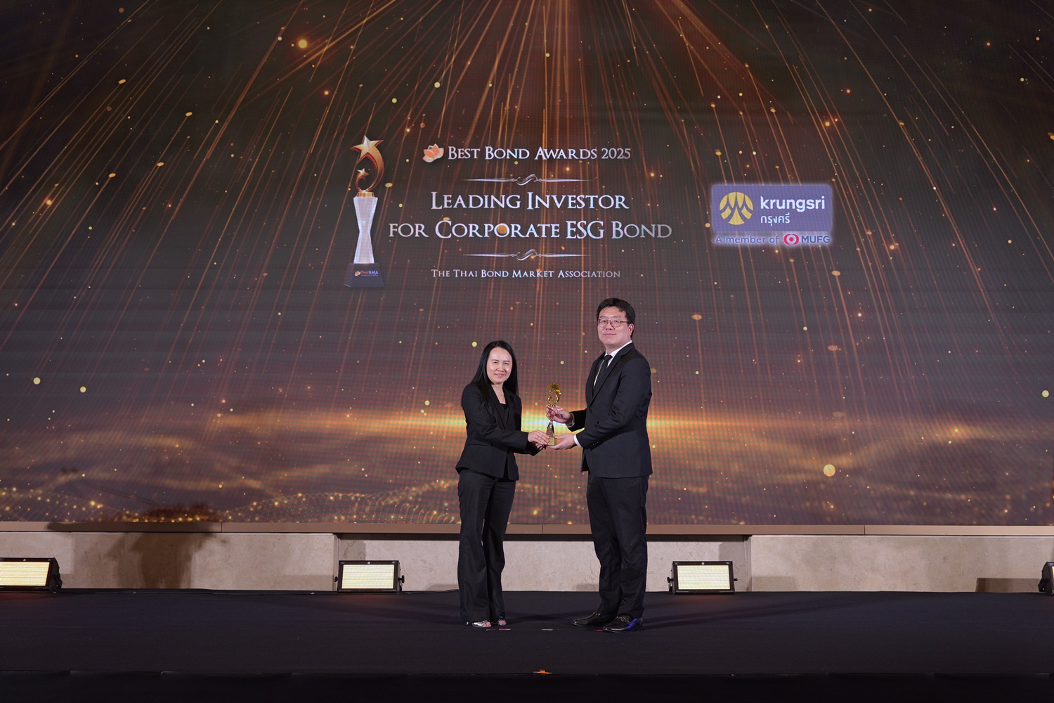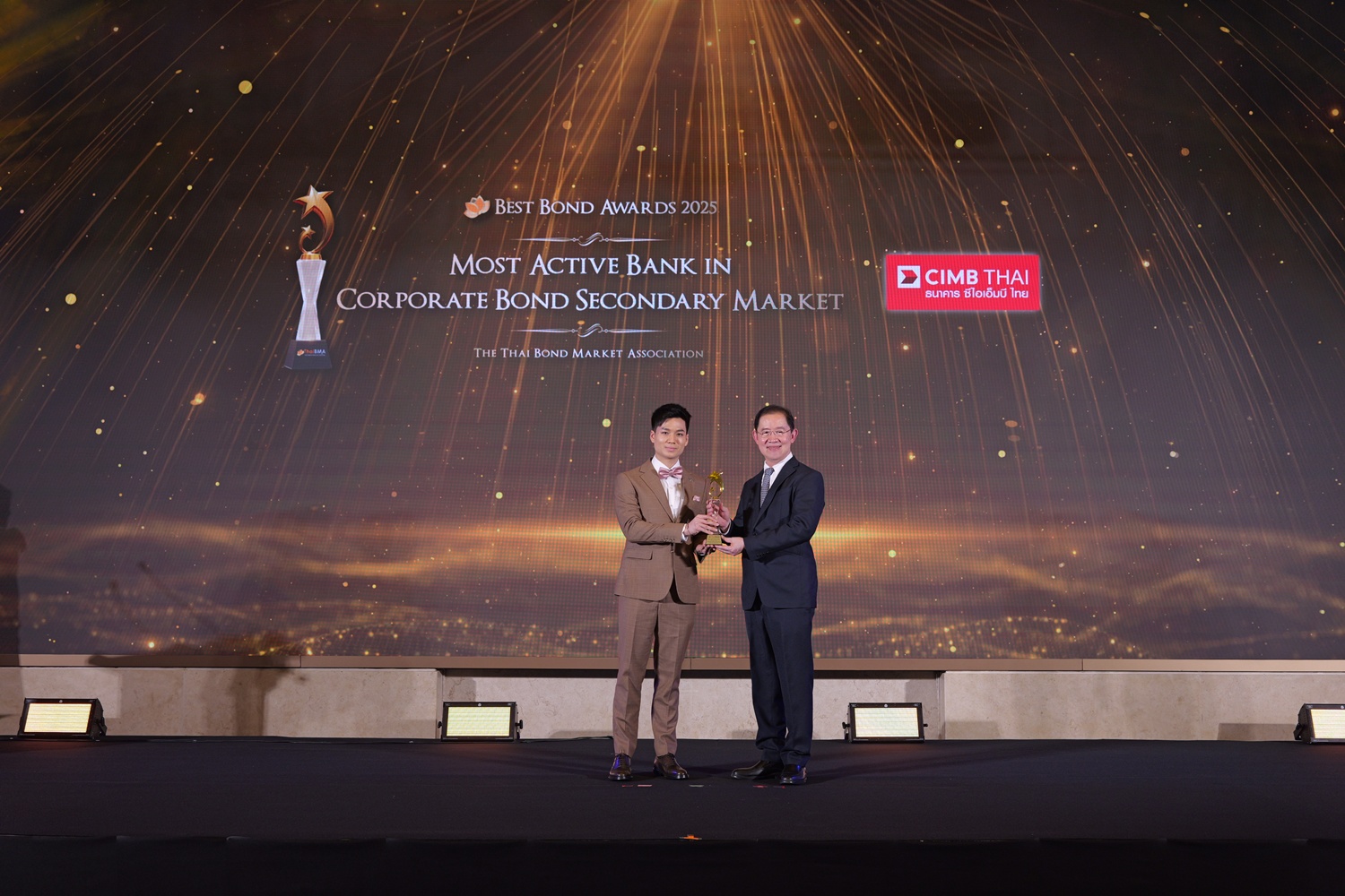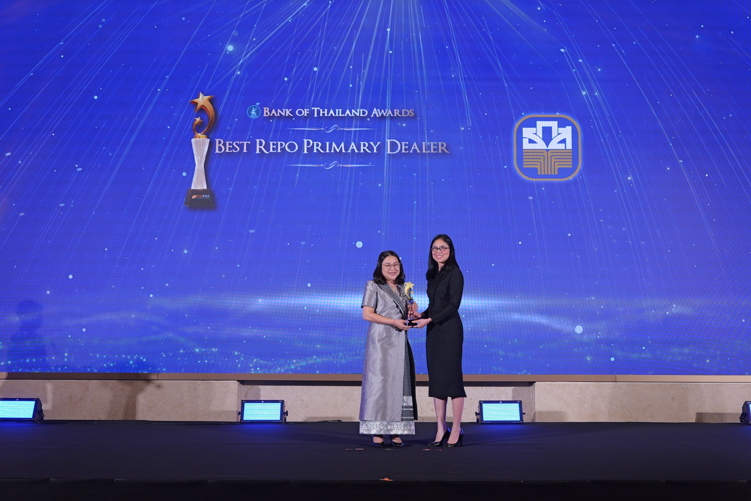 ThaiBMA Gallery สมาคมตลาดตราสารหนี้ไทยจัดงานมอบรางวัลตราสารหนี้ยอดเยี่ยมแห่งปี 2568 (ThaiBMA Best Bond Awards 2025) สมาคมตลาดตราสารหนี้ไทยจัดงานมอบรางวัลตราสารหนี้ยอดเยี่ยมแห่งปี 2568 (ThaiBMA Best Bond Awards 2025) เมื่อวันที่ 27 กุมภาพันธ์ 2569 ณ ห้องฉัตราบอลลูม โรงแรมสยามเคมปินสกี้ กรุงเทพฯ โดยมีวัตถุประสงค์เพื่อยกย่ององค์กร และบุคลากรที่มีความโดดเด่นในธุรกรรมตราสารหนี้ และส่งเสริมให้องค์กรต่างๆ ที่เกี่ยวข้องร่วมกันพัฒนาตลาดตราสารหนี้ให้เติบโตอย่างยั่งยืน การตัดสินรางวัล Best Bond Awards มาจากผลการลงคะแนนของคณะกรรมการตัดสิน สถิติ และการลงคะแนนจากผู้มีส่วนร่วมในตลาดตราสารหนี้ ⭐️ท่านสามารถ Download เอกสาร Press Release ได้ที่นี่: https://www.thaibma.or.th/doc/press/y2026/Press27022026.pdf Back to Main Gallery