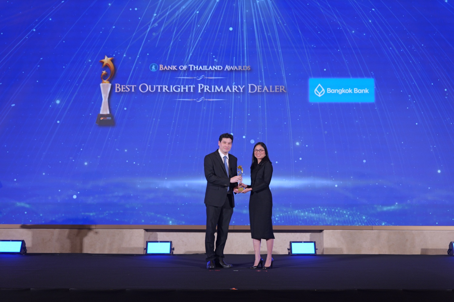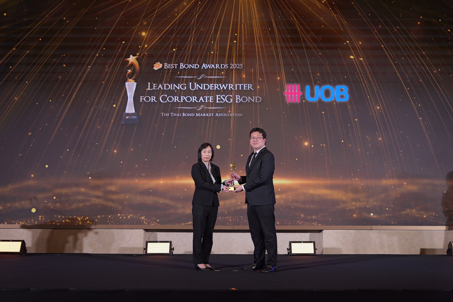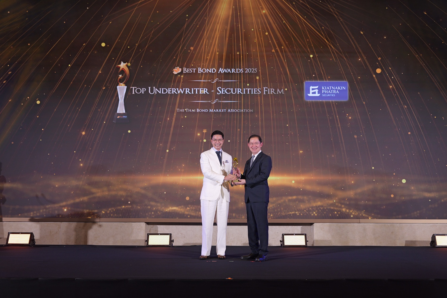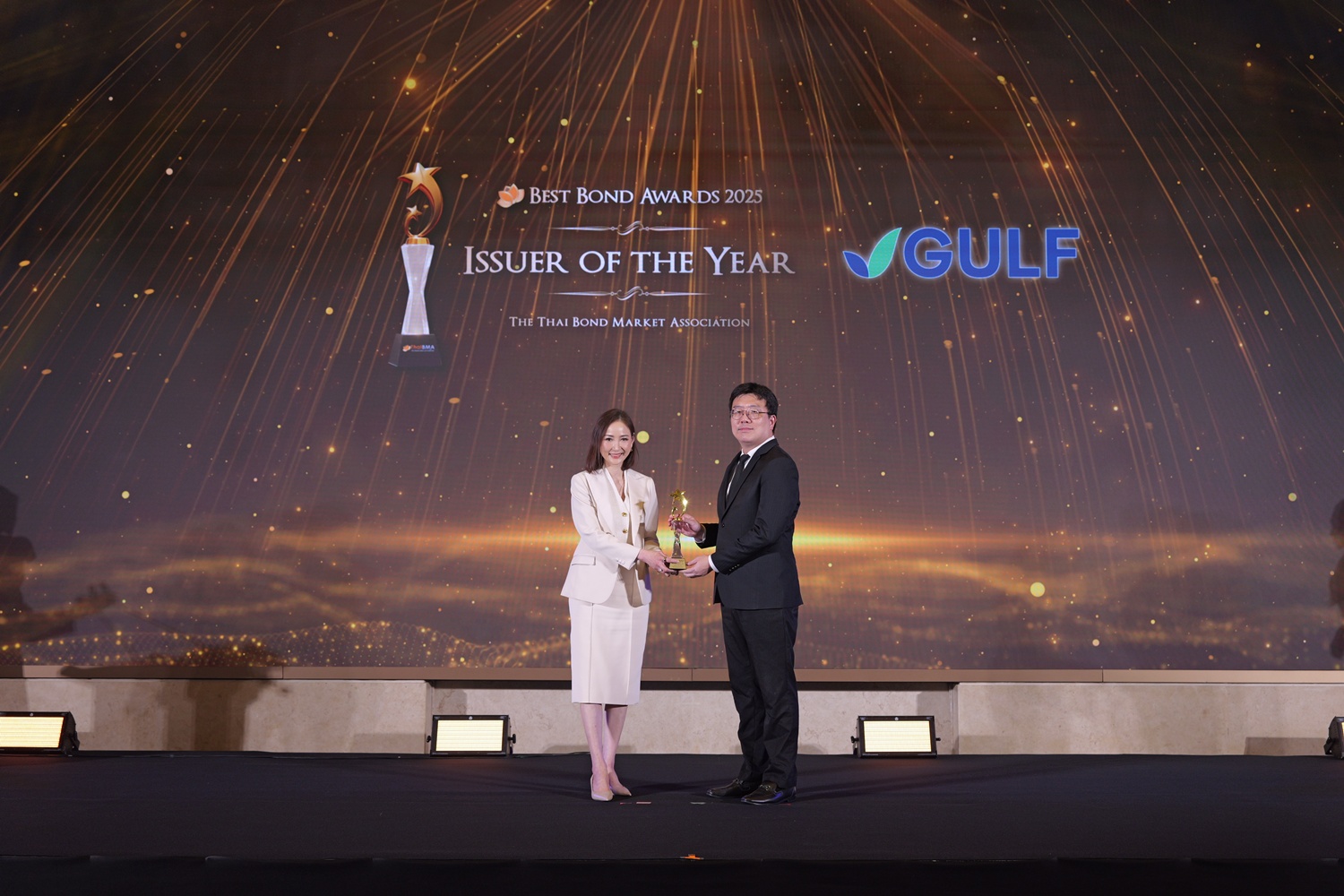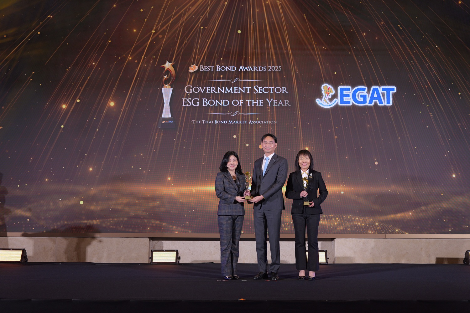 ThaiBMA Gallery สมาคมตลาดตราสารหนี้ไทยจัดงานมอบรางวัลตราสารหนี้ยอดเยี่ยมแห่งปี 2568 (ThaiBMA Best Bond Awards 2025) สมาคมตลาดตราสารหนี้ไทยจัดงานมอบรางวัลตราสารหนี้ยอดเยี่ยมแห่งปี 2568 (ThaiBMA Best Bond Awards 2025) เมื่อวันที่ 27 กุมภาพันธ์ 2569 ณ ห้องฉัตราบอลลูม โรงแรมสยามเคมปินสกี้ กรุงเทพฯ โดยมีวัตถุประสงค์เพื่อยกย่ององค์กร และบุคลากรที่มีความโดดเด่นในธุรกรรมตราสารหนี้ และส่งเสริมให้องค์กรต่างๆ ที่เกี่ยวข้องร่วมกันพัฒนาตลาดตราสารหนี้ให้เติบโตอย่างยั่งยืน การตัดสินรางวัล Best Bond Awards มาจากผลการลงคะแนนของคณะกรรมการตัดสิน สถิติ และการลงคะแนนจากผู้มีส่วนร่วมในตลาดตราสารหนี้ ⭐️ท่านสามารถ Download เอกสาร Press Release ได้ที่นี่: https://www.thaibma.or.th/doc/press/y2026/Press27022026.pdf Back to Main Gallery