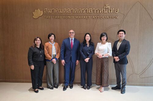 ThaiBMA Gallery ปี 2569 ปี 2568 ปี 2567 ปี 2566 ปี 2565 ปี 2564 ปี 2563 ปี 2562 ปี 2561 ปี 2560 ปี 2559 ปี 2558 มีนาคม 17 มี.ค. ThaiBMA ร่วมเป็นวิทยากรในโครงการประชุมเชิงปฏิบัติการ “การลงทุนอย่างยั่งยืนในสหกรณ์” 17 มีนาคม 2569 14 มี.ค. ThaiBMA จัดอบรมหลักสูตร Bond Trader Refresher Course 2026 รอบที่ 1 14 มีนาคม 2569 11 มี.ค. ผู้บริหารและทีมผู้เชี่ยวชาญด้านข้อมูลจาก Bloomberg เข้าพบ ThaiBMA 11 มีนาคม 2569 9 มี.ค. ผู้แทนจาก ASEAN+3 Macroeconomic Research Office (AMRO)เข้าพบ ThaiBMA 9 มีนาคม 2569 กุมภาพันธ์ 27 ก.พ. ThaiBMA จัดงานมอบรางวัลตราสารหนี้ยอดเยี่ยมแห่งปี 2568 (ภาพผู้รับรางวัล) 27 กุมภาพันธ์ 2569 27 ก.พ. ThaiBMA จัดงานมอบรางวัลตราสารหนี้ยอดเยี่ยมแห่งปี 2568 (ภาพบรรยากาศ) 27 กุมภาพันธ์ 2569 25 ก.พ. ผู้แทนจาก S&P Global Ratings เข้าพบ ThaiBMA 25 กุมภาพันธ์ 2569 13 ก.พ. ThaiBMA ร่วมเป็นวิทยากรเรื่องตลาดหุ้นกู้ ในโครงการ “การประเมินคุณภาพการจัดประชุมสามัญผู้ถือหุ้น ปี 2569” 13 กุมภาพันธ์ 2569 9 ก.พ. ผู้แทนจาก TFEX และ SET เข้าพบ ThaiBMA 9 กุมภาพันธ์ 2569 3 ก.พ. ThaiBMA ให้การต้อนรับทีมผู้บริหารจาก WealthMagik 3 กุมภาพันธ์ 2569 2 ก.พ. ThaiBMA เข้าร่วมซักซ้อมเตรียมความพร้อมการใช้งานระบบ IIS 2 กุมภาพันธ์ 2569 มกราคม 29 ม.ค นักศึกษาจาก มหาวิทยาลัยขอนแก่น เข้าศึกษาดูงาน ณ ที่ทำการ ThaiBMA 29 มกราคม 2569 28 ม.ค ผู้แทนจาก World Bank และ IFC เข้าพบ ThaiBMA 28 มกราคม 2569 27 ม.ค ThaiBMA จัดประชุม Bondholders’ Representative Forum 1/2026 27 มกราคม 2569 26-27 ม.ค ThaiBMA ร่วมเป็นวิทยากร โครงการอบรมเชิงปฏิบัติการ “การลงทุนในตราสารหนี้ของสหกรณ์ออมทรัพย์” รุ่นที่ 2 26-27 มกราคม 2569 20 ม.ค CGIF เข้าพบผู้บริหาร ThaiBMA 20 มกราคม 2569 14 ม.ค ธนาคารเกียรตินาคินภัทร ,EXIM Bank และ JPMorgan Thailand เข้าพบผู้บริหาร ThaiBMA 14 มกราคม 2569 7 ม.ค ThaiBMA จัดงานแถลงข่าวสรุปภาวะตลาดตราสารหนี้ไทยปี 2568 และแนวโน้มปี 2569 7 มกราคม 2569 ธันวาคม 19 ธ.ค. ThaiBMA สนับสนุนเงินช่วยเหลือผู้ประสบอุทกภัยในพื้นที่จังหวัดภาคใต้ ผ่านสภากาชาดไทย 19 ธันวาคม 2568 15 ธ.ค. ThaiBMA สนับสนุนเงินช่วยเหลือผู้ประสบอุทกภัยในพื้นที่จังหวัดภาคใต้ ผ่านมูลนิธิโรงพยาบาลสงขลานครินทร์ 15 ธันวาคม 2568 15 ธ.ค. ThaiBMA ได้รับรางวัล “สุดยอดความร่วมมือ” ในโครงการ ตลาดทุนไทยร่วมใจ ส่งพลังความรู้สู่ประชาชน เฟส 2/2568 15 ธันวาคม 2568 13 ธ.ค. ThaiBMA สนับสนุนเงินช่วยเหลือผู้ประสบอุทกภัยในพื้นที่หาดใหญที่ประสบอุทกภัย โดยขอร่วมบริจาคเงินช่วยฟื้นฟูโรงพยาบาลหาดใหญ่ 13 ธันวาคม 2568 3 ธ.ค. ThaiBMA ร่วมกับสำนักงาน ก.ล.ต. จัดประชุมคณะทำงานพัฒนาแนวทางปฏิบัติ High-yield bond covenants ครั้งที่ 2/2568 3 ธันวาคม 2568 2 ธ.ค. ThaiBMA ร่วมประชุมกับ ก.ล.ต. เพื่อแลกเปลี่ยนแนวทางเสริมสร้างและพัฒนาตลาดตราสารหนี้ 2 ธันวาคม 2568 1 ธ.ค. ThaiBMA ให้การต้อนรับคณะจาก Indonesia Financial Services Authority (OJK Indonesia) 1 ธันวาคม 2568 พฤศจิกายน 27-28 พ.ย. การอบรมหลักสูตร Sustainable (ESG) Financing & Investing 27-28 พฤศจิกายน 2568 27 พ.ย. ThaiBMA ร่วมเป็นวิทยากรในงาน Thailand’s Investment Horizon ที่จัดโดย CGIF 27 พฤศจิกายน 2568